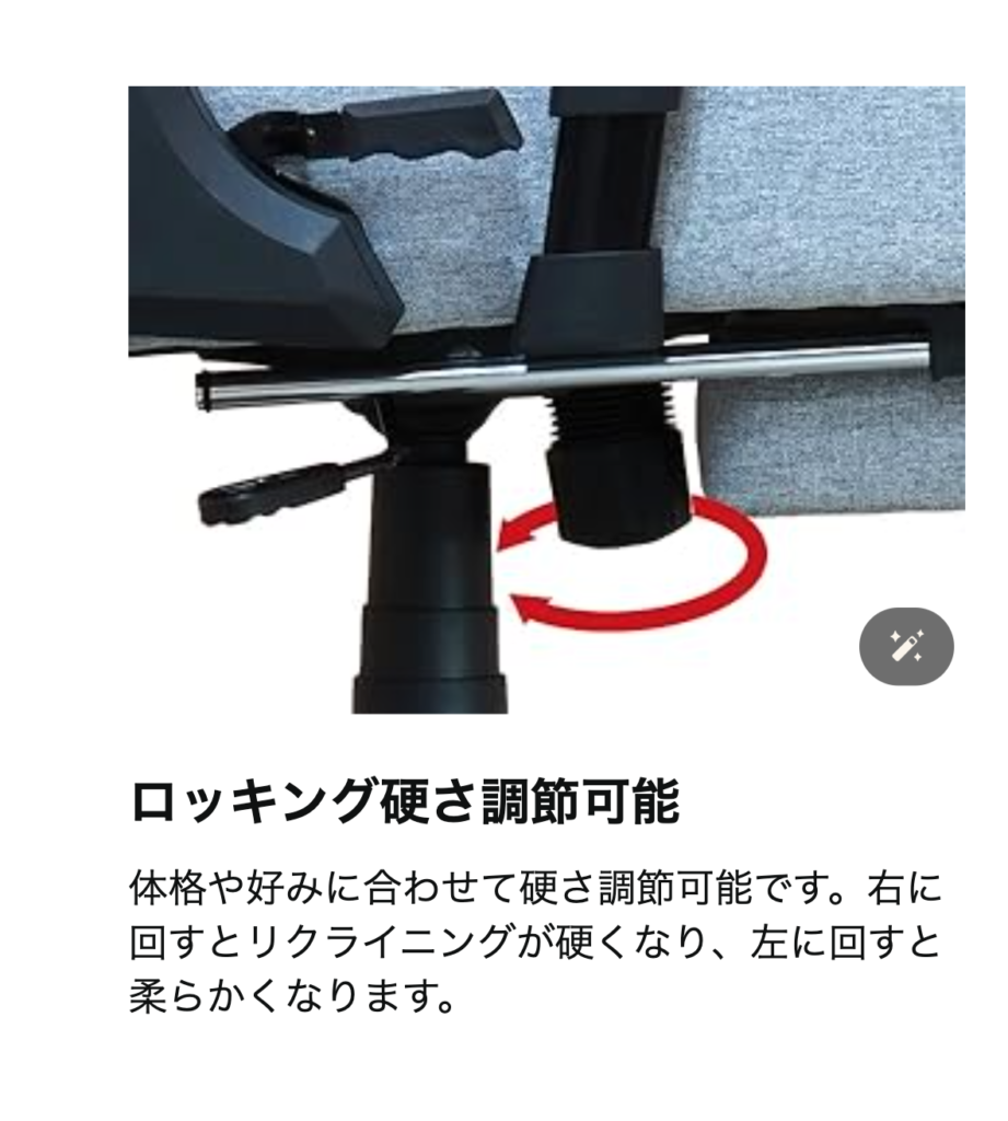 添付画像にもあるように、ロッキングチェアを推してる説明もありますので、ロッキング機能付きのゲーミングチェアを探してる人には安心して購入できる商品です。