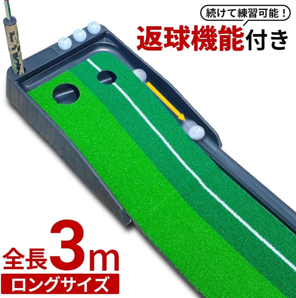 SMALY 自動 返球機能付き パター練習マット 3m 室内 屋外 屋内 静音 おすすめ アプローチ マット ゴルフ パターマット パター 練習 練習器具