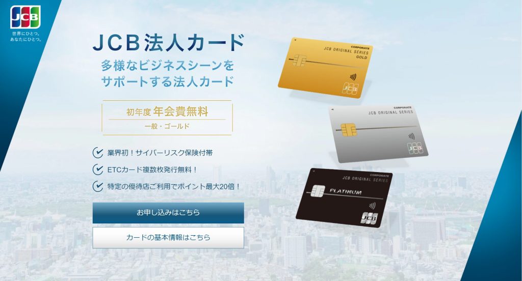 | JCB法人カード | 2,200円(税込) | 充実した保険サービスとポイントプログラム | 申込み手続きがスムーズ |