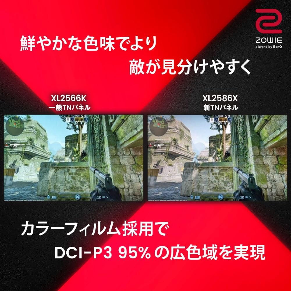 ベンキュージャパンのZOWIE XL2586Xは、特にFPS・TPS上級者に向けた24.5インチのゲーミングモニターです。最大540Hzのリフレッシュレートと高速な応答速度により、極限まで遅延を抑えたプレイが可能です。これにより、プロフェッショナルなゲーマーや競技シーンでも十分なパフォーマンスを発揮します。
