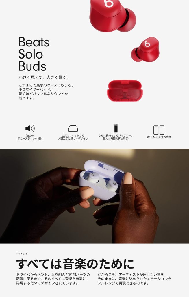 Beats Solo Budsは、AppleとAndroid両方のデバイスに対応しており、幅広いユーザーにとって使いやすい製品です。iPhoneやiPadといったApple製品はもちろん、SamsungやGoogleのAndroidスマートフォンとも互換性があり、簡単にBluetoothで接続することが可能です。この互換性の高さにより、異なるOSのデバイスを使い分けている人でも、どちらのデバイスでもスムーズに接続できるのが特徴です。さらに、内蔵マイクが搭載されているため、通話も快適で、ビジネスシーンやオンラインミーティングなどでも重宝します。