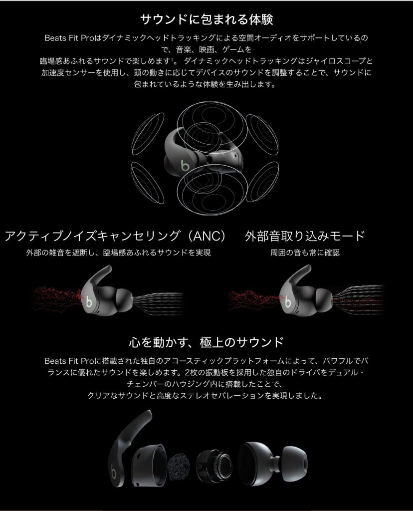 Beats Fit Proは、Appleの「ダイナミックヘッドトラッキング」に対応した空間オーディオ機能を搭載しています。この機能により、映画や音楽、ゲームなどあらゆるコンテンツで立体的なサウンドが体験でき、まるで音に包まれているかのような没入感を味わうことができます。ヘッドトラッキングにより、頭の向きに合わせて音の方向が変化するため、臨場感が一層高まり、まるで目の前でライブ演奏を楽しんでいるかのような感覚が得られます。これは、映画やゲームなどの視聴を新たなレベルに引き上げる機能です。