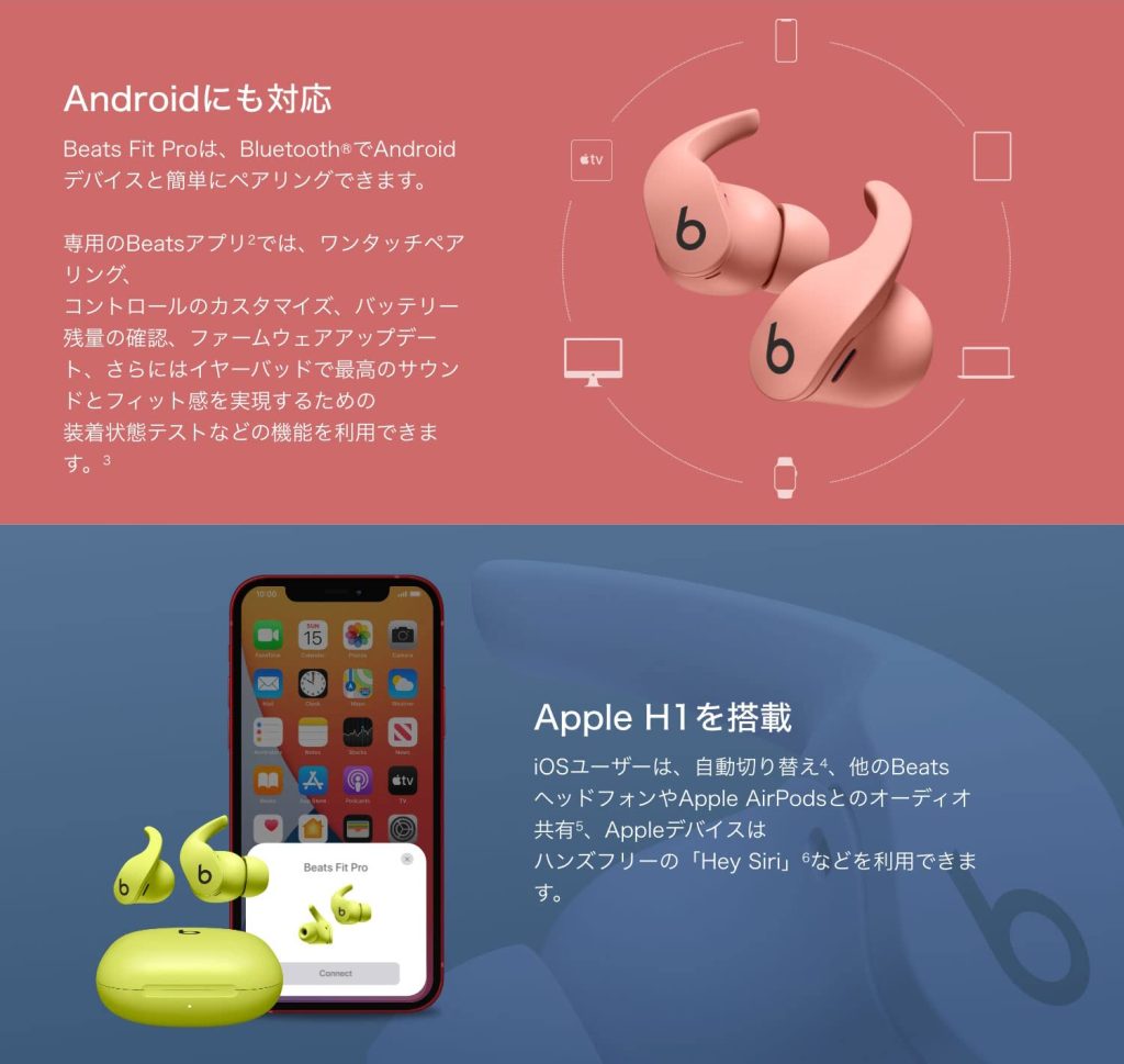 Beats Fit Proは、AppleのH1チップを搭載しており、iPhoneやiPad、MacなどのAppleデバイス間での自動切り替えが可能です。この機能により、デバイス間の接続がシームレスで、複数のデバイスを同時に使用している場合でも、スムーズに切り替えることができます。また、他のBeats製品やAirPodsとのオーディオ共有も可能で、家族や友人と同じ音楽や動画を共有することができます。さらに、「Hey Siri」機能をサポートしており、音声コマンドでの操作も簡単に行えるため、日常生活がより快適になります。