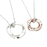 ネックレスの最大の特徴は、そのシンプルで洗練された「メビウスデザイン」です。メビウスの帯は終わりがなく続く形状を持つため、「永遠の愛」や「変わらぬ絆」を象徴するモチーフとして広く知られています。この意味合いは、カップルが共有する思いとして非常にロマンチックであり、二人の特別な絆を形にするアイテムとして理想的です。また、シルバーとピンクシルバーの組み合わせが、高校生にも親しみやすい柔らかく清楚な印象を与えます。カジュアルな日常の服装にも、少しフォーマルな場面でも自然に馴染むデザインは、二人のアクセサリーとして非常に実用的です。