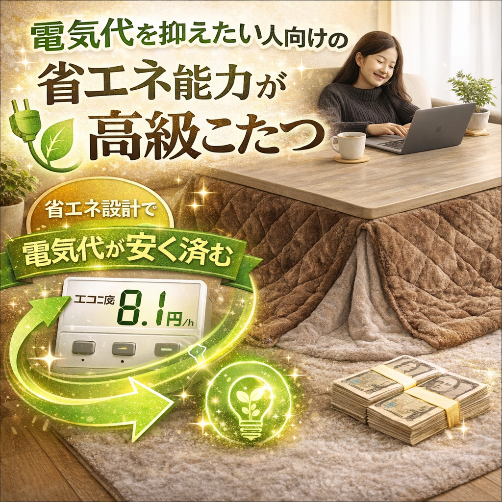 「電気代を抑えたい人向けの省エネ能力が優秀な高級こたつ」を検索している人は、単純に消費電力が低い商品を探しているわけではありません。暖かさを我慢せず、快適な暮らしを維持しながら、無理なく電気代を抑えたいという現実的なニーズを持っています。そのため、省エネ性能を重視した高級こたつ選びでは、ワット数の数字だけを見るのではなく、どのような仕組みで効率よく暖めているのかを理解することが重要になります。高級こたつほど、熱を無駄にしない構造や制御が徹底されており、結果として少ない電力でも満足できる暖かさを実現しています。
