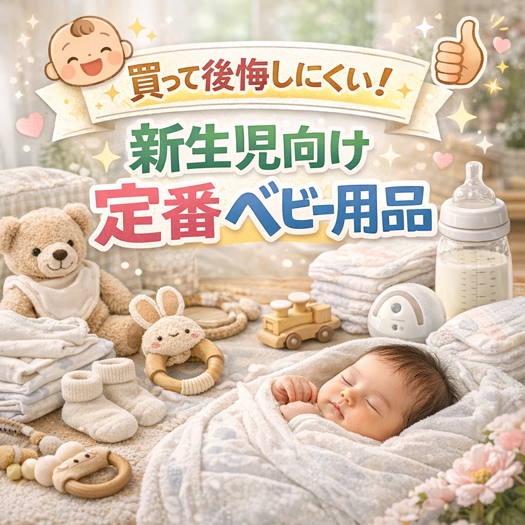 ベビー用品って、使う期間が短いものほど後悔しやすいですよね。買ったのに合わなかった、置き場所がない、すぐサイズアウトした。だから新生児向け定番ベビー用品は、“使い終わったあと”まで想像して選ぶと失敗しにくいです。