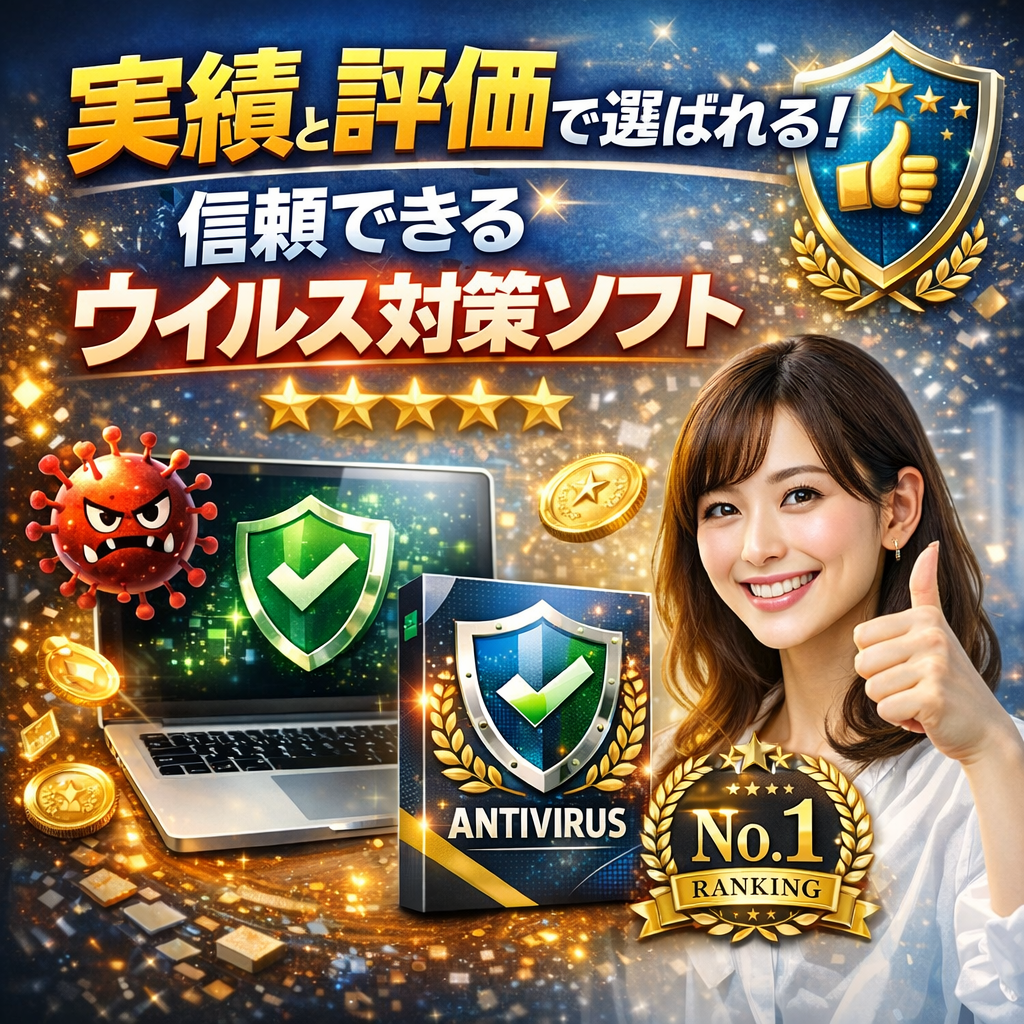 「実績と評価で選ばれる!信頼できるウイルス対策ソフト」で探している人って、だいたい同じ悩みを抱えてます。ウイルス対策ソフトって、普段は存在感がないのが理想なのに、いざというときは家計簿・ネットバンキング・仕事のファイル・家族の写真まで守ってくれないと困る。だからこそ、スペック表の細かい違いより、“第三者のテストで勝っているか”“長く使われているか”“サポートがちゃんとしているか”みたいな「信用の土台」が一番効いてきます。