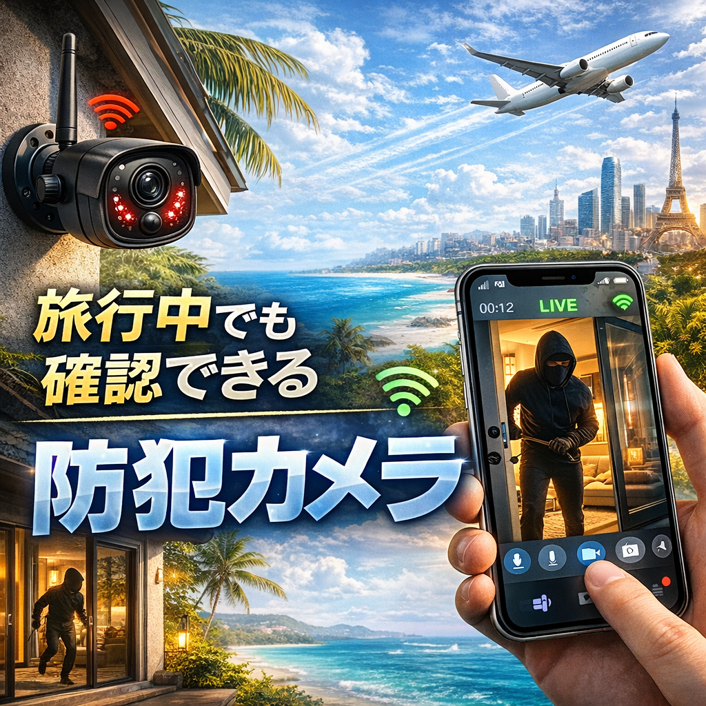 旅行って楽しい反面、出発してしばらくすると急に不安が湧いてきませんか。「玄関まわり大丈夫かな」「宅配ボックス荒らされてない?」「庭に知らない人が入ってない?」「ペットや家族の動きも気になる」みたいに、気持ちがソワソワする瞬間がある。だからこそ“旅行中でも確認できる防犯カメラ”を探す人は多いです。